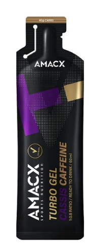 El Amacx Turbo Gel Cafeína Cassis es un gel deportivo listo para usar al que ya se ha añadido agua. Este gel contiene varias fuentes de hidratos de carbono de liberación gradual (proporción de hidratos de carbono 1:0,8). Disponible en los sabores Cítricos, Cola Lime y Cassis Cafeína.